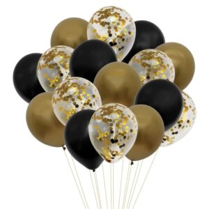 Set baloane, auriu/ negru/ confeti aurii, 16 bucati