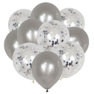 Set baloane, argintiu/ confetti argintii, 10 bucati