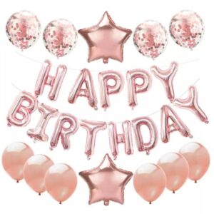 Set 25 baloane latex + folie + litere “Happy Birthday” rose gold Domi Party & Gifts