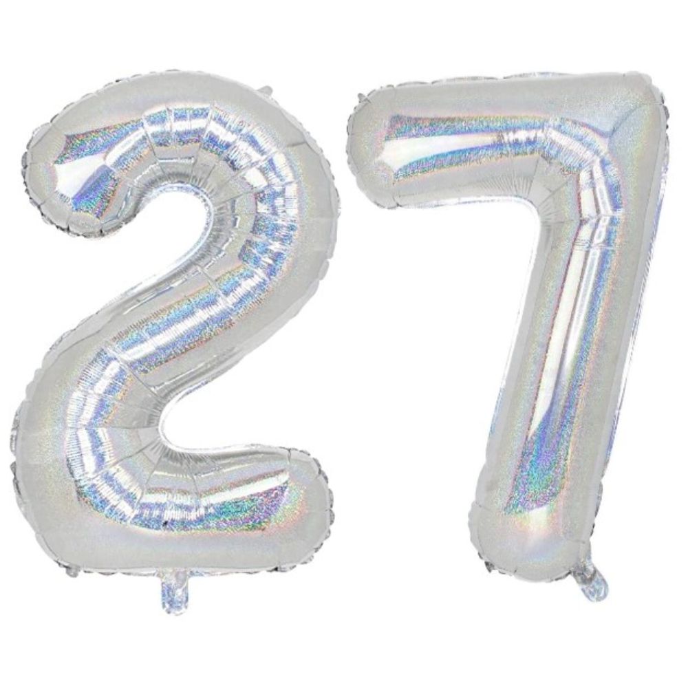 Balon folie cifra aniversare 27 ani, metalizat 100 de cm, este ideal pentru orice aniversare aducând culoare petrecerii tale.