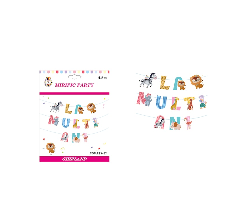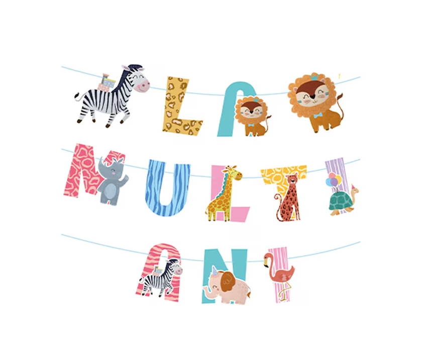 Începeți aventura petrecerii de ziua de naștere cu această Ghirlandă “La mulți ani” temă animale și asigurați-vă că fiecare moment este plin de distracție și entuziasm!