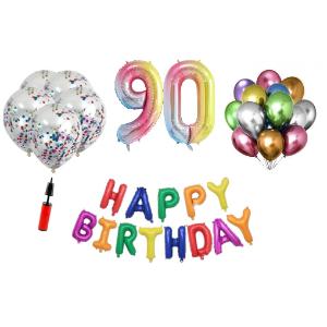 Set baloane Happy Birthday 90 ani, Baloane latex, Baloane folie, Baloane confetti, Pompa