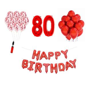 Set baloane Happy Birthday 80 ani, Baloane latex, Baloane folie, Baloane confetti, Pompa